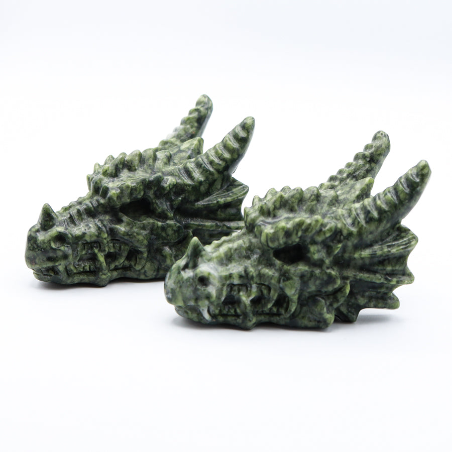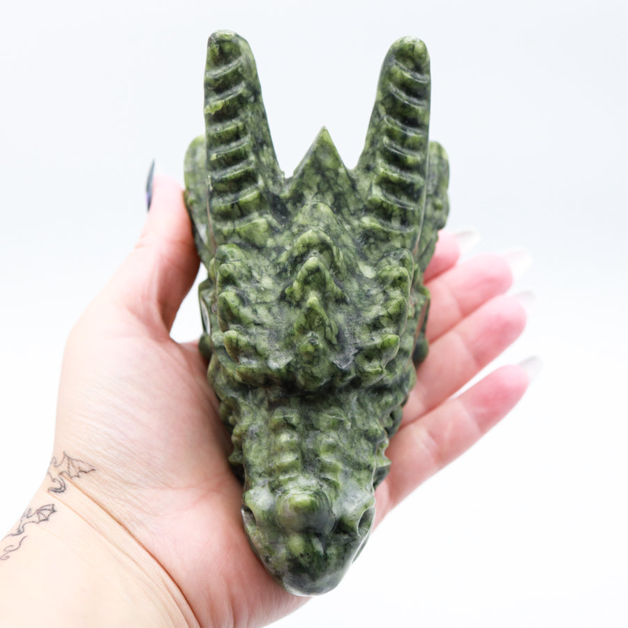 Green Jade Dragon Head with Horns